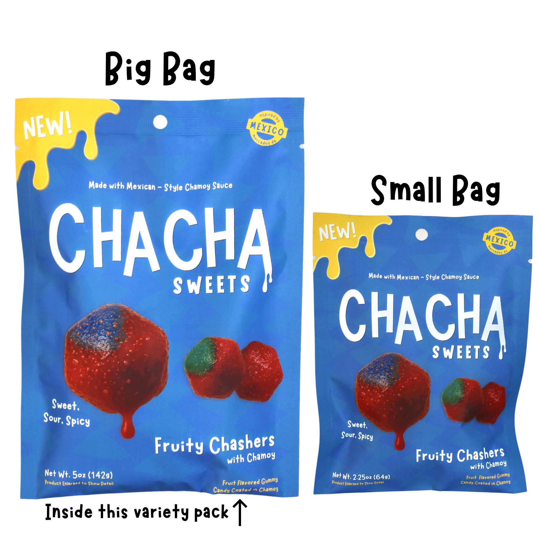 Our Chamoy Candy Variety Pack brings all the fuego with 4 BIG bags of our best-selling Mexican-inspired candies: